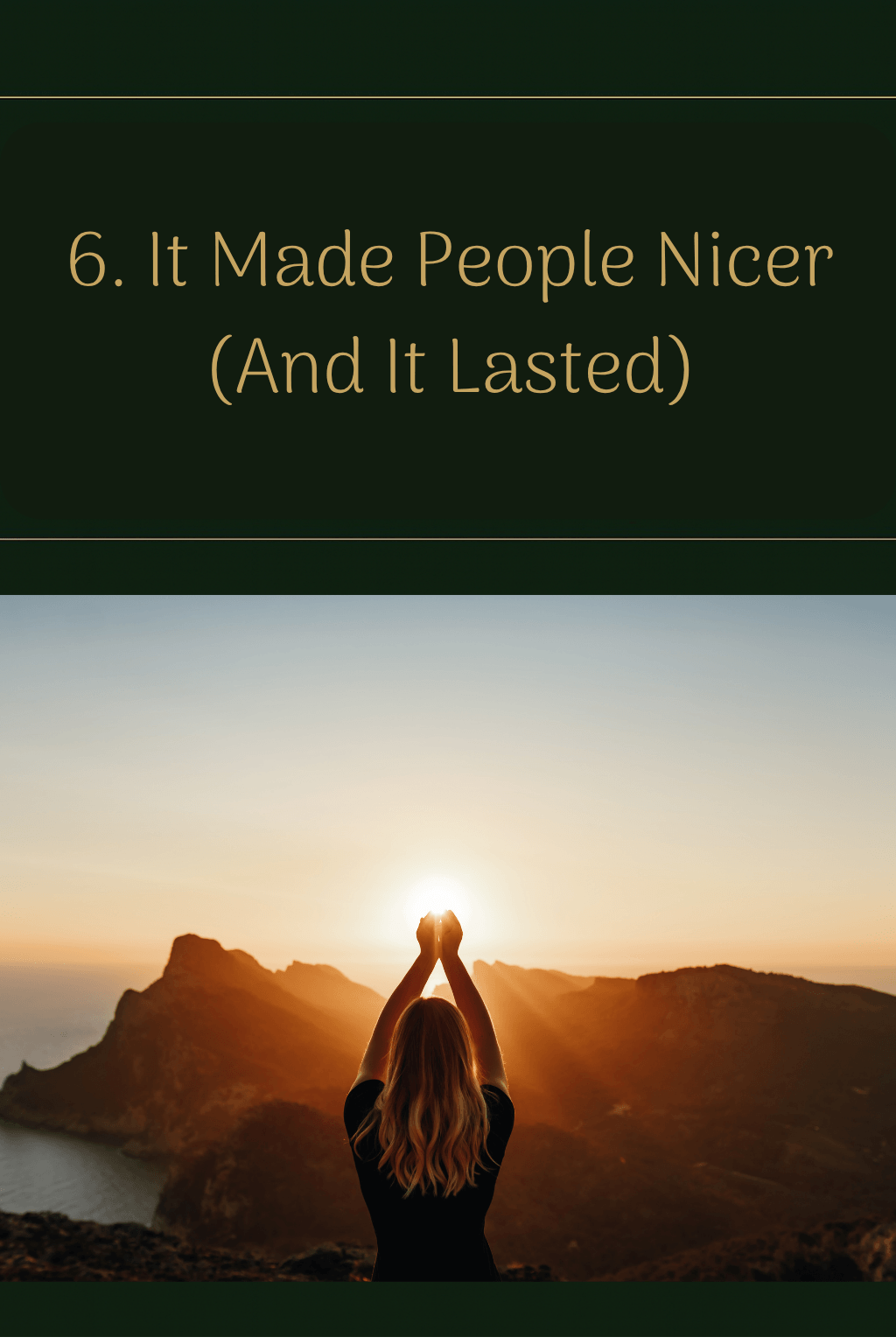Multiple studies found that psilocybin increased prosocial behavior—empathy, altruism, kindness—and the changes persisted for months.